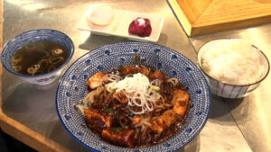ブロックから切り出した豚肉を使ったとん平焼き:750円