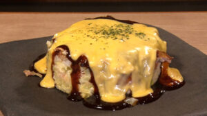 • 固定観念に捉われない愛知県出身の店主の自由な発想でケーキのようなお好み焼きが誕生