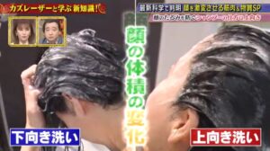 上向きシャンプーで両サイドから髪を集めるように洗います。