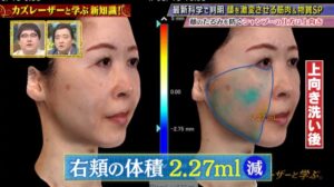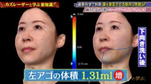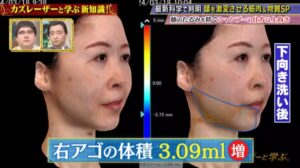 たった1度の上向き洗いで、頬の体積が減少し、リフトアップ効果がありました。